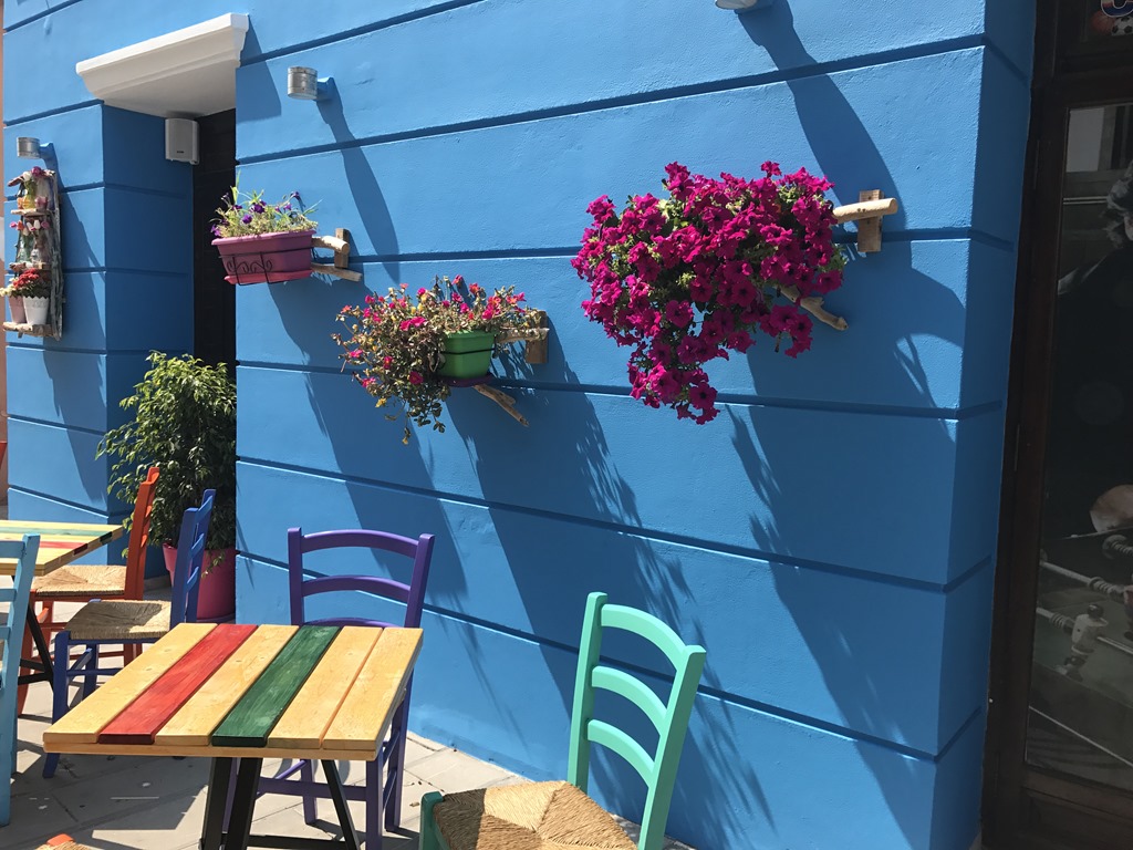 Men grekerna är duktiga på att dekorera och använda glada färger.