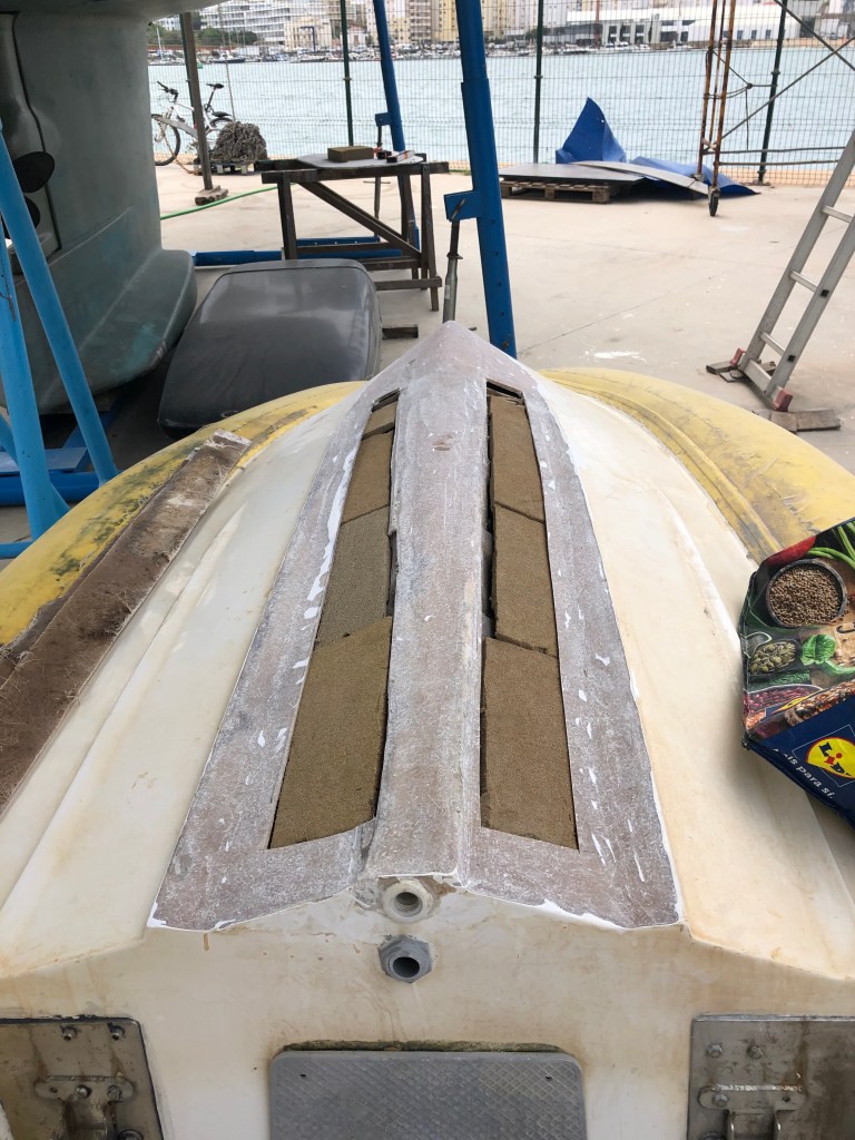 Taket över sittbrunnen har fått en ordentlig och välbehövlig uppfrächning. Det var det jobbet som tog mest tid i anspråk, Jonas lade ner ca 600 timmar på att få ordning på det. Han hade god hjälp av vår gode vän Kenneth på El Cordero. Så nu ser taket ut så som vi ville att det skulle sett ut från början …