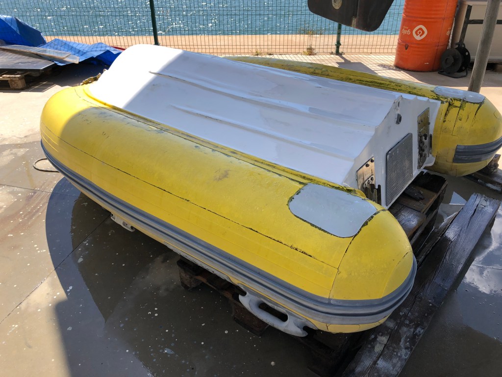 Vår jolle, en Caribe CX8, är en riktig pärla tillsammans med vår Parsun tvvåtakts utombordare på15 HK. Men åldern tar ut sin rätt även där. Men inget värre än en ordentlig service av motorn och en ordentlig renovering av botten på jollen kunde råda bot på. Jonas fick skära bort ca 30% av bottenplasten, fylla med divinycell och sedan plasta igen hålen. Nu är bottnen styvare än ett stålskrov. Ända sedan vi köpte jollen 2006 har vi haft problem med att vatten trängt in genom gelcoaten och plasten och stannat kvar i utrymmet mellan yttre och inre botten. Vi har aldrig lyckats tömma ut allt vatten och det har alltid varit fuktigt vilket gjort att plasten har ruttnat. Men nu är vi av med det problemet.
