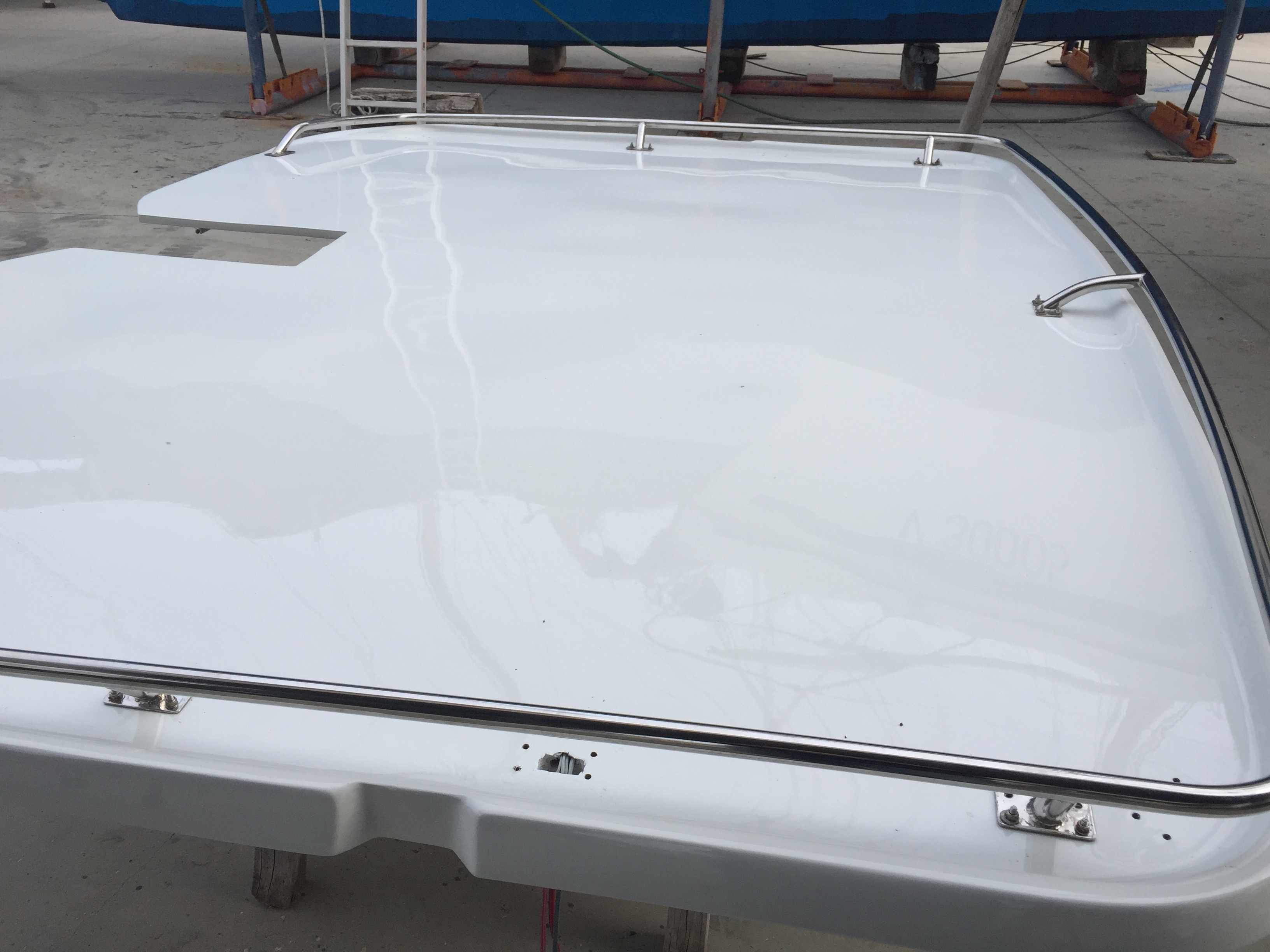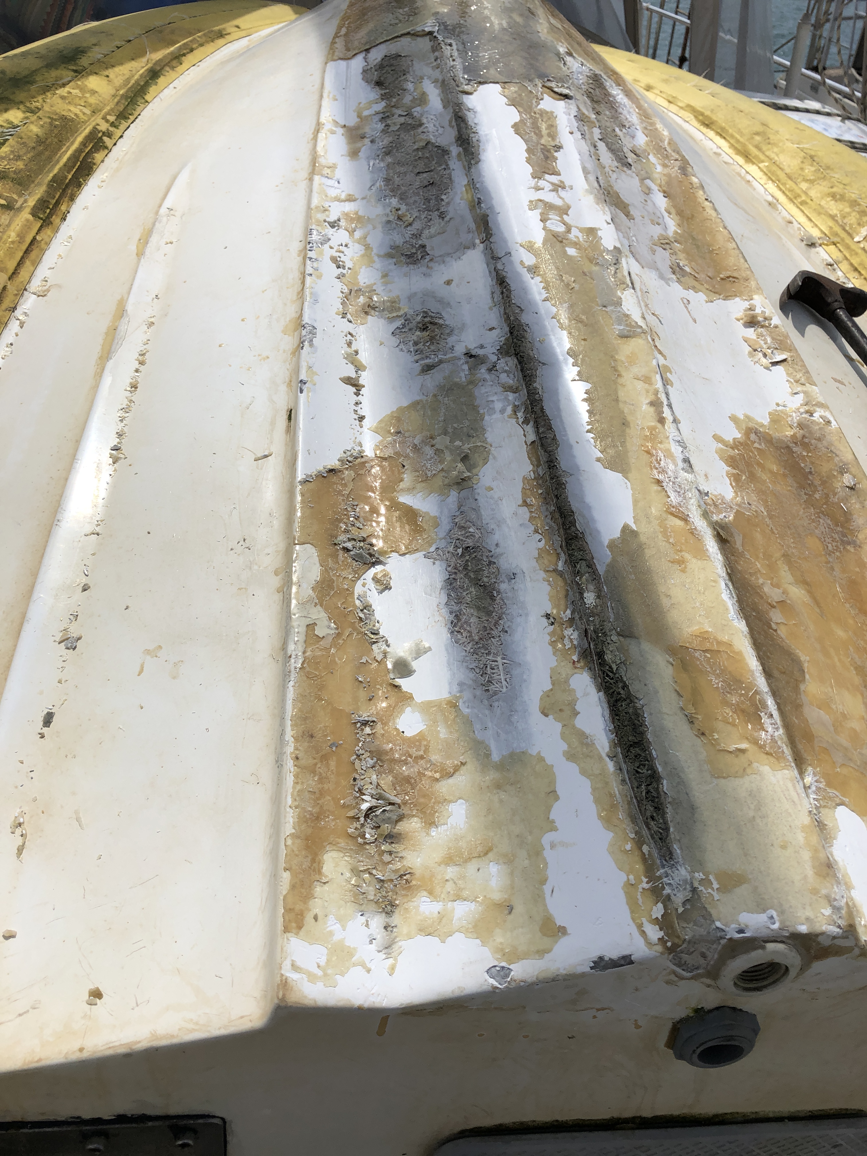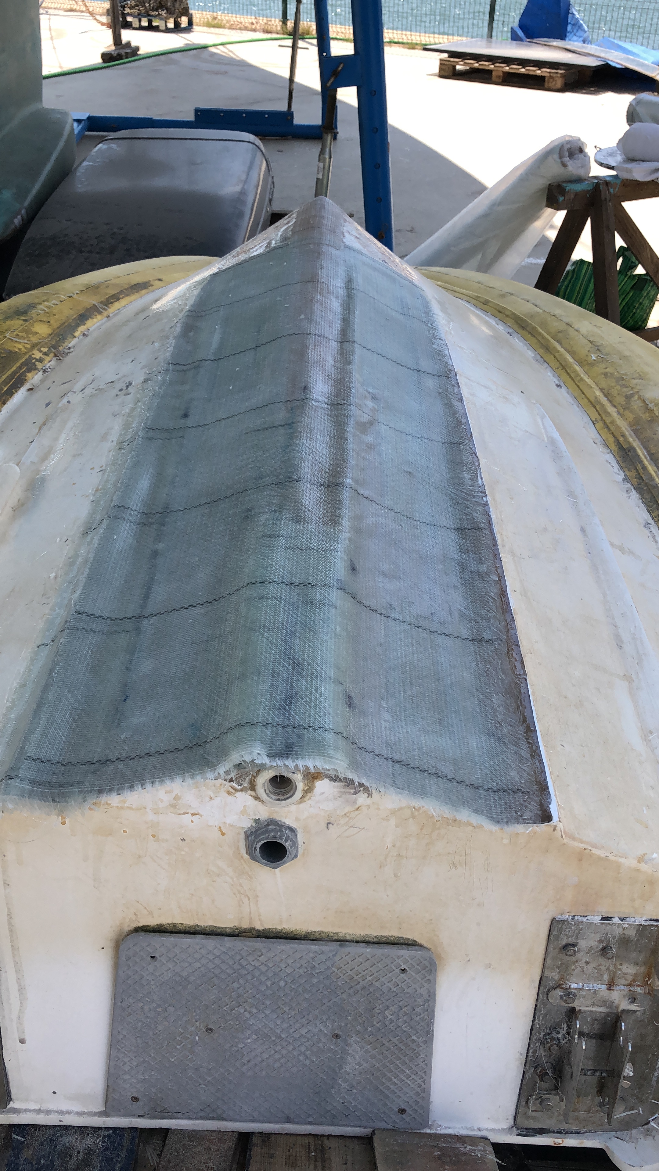 Bommen till stormasten, fick vi lite bry med, då den sprack i en svetsfog där skotlinan var fäst i bommen. Även fästet hade blivit deformerat, så det var bara att lyfta ner bommen och ta den till svetsaren på varvsområdet. Han gjorde ett fantastiskt jobb med nytt storskotsfäste som även lagade sprickan. Att vi då dessutom var tvugna att lacka om bommen var inte heller någon nackdel.