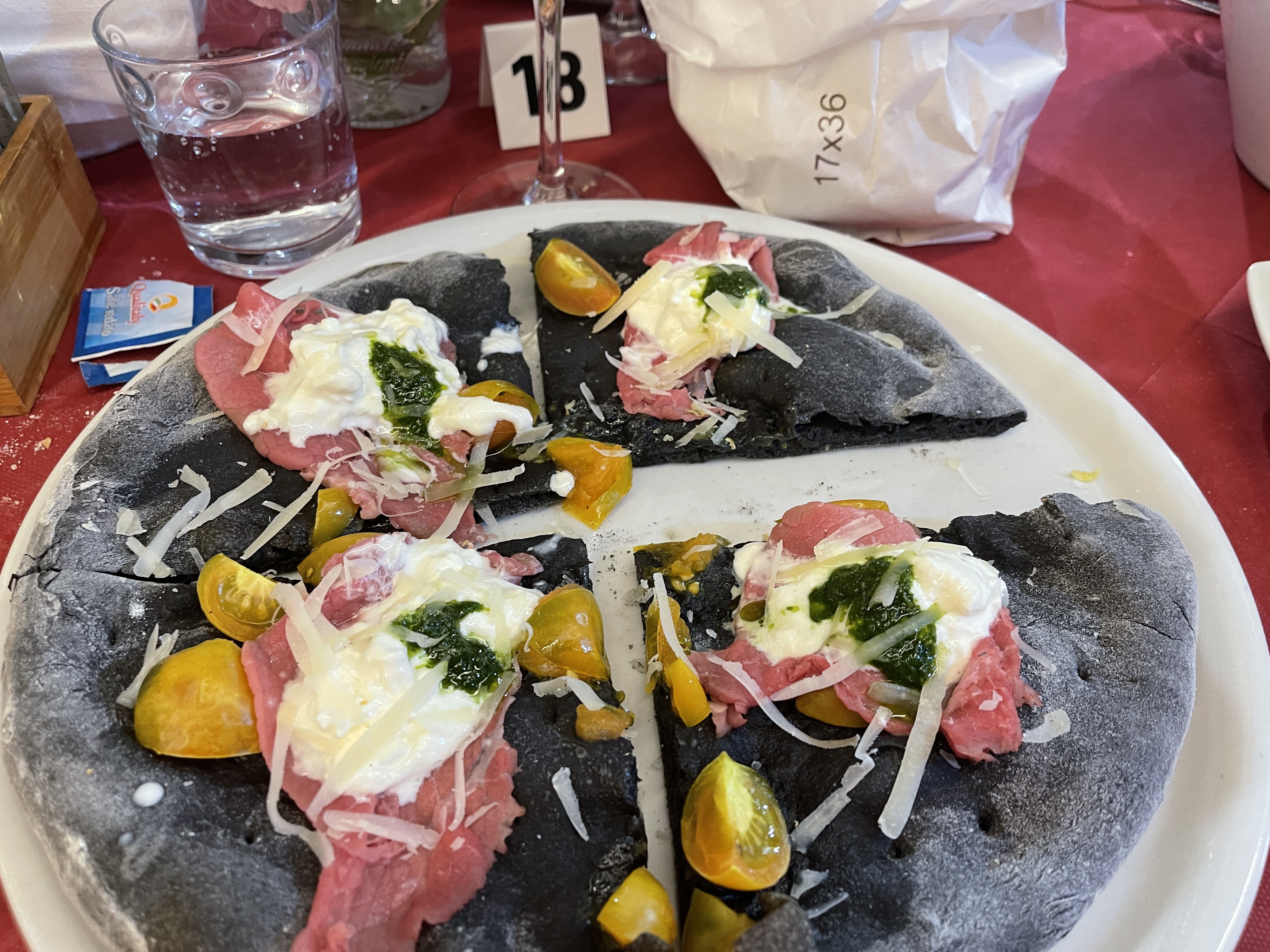 Nåväl, väl framme på Sardinen och tryggt förtöjda i Marine Sifredi i Carloforte sjönk transportseglingen i glömska. (Vi hade hyfsat väder men en dyning som inte var att leka med). Vi fick en plats mellan två stycken båtar som inte rört sig på några år. Med-mooring igen! Men nu har vi lärt oss. Lägg akterförtöjningen löst, spänn repen i fören, backa mot bryggan och spänn upp aktern. Så väldigt mycket enklare än att slita och dra i de tjocka, vattenstinna tamparna i fören. Middag blev på Ristorante 035, ett kort stenkast från marinan. Dvs tvärs över gatan. Där träffade vi vår vän Drew, från USA som haft sin Amel SuoerMaramu 2000 på varvet här sedan 2018. Otroligt roligt att äntligen få träffas igen.